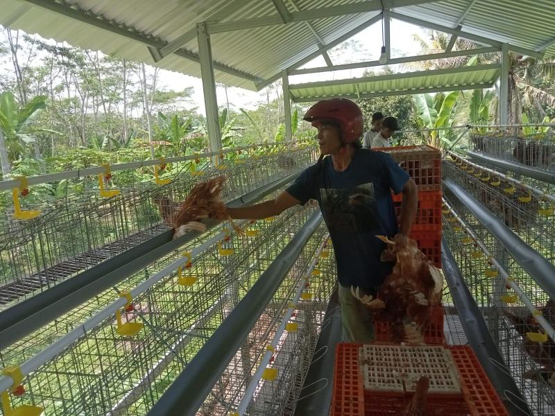 Kegiatan ini dilakukan secara bertahap dengan melibatkan pengelola dan pekerja kandang. Dalam prosesnya, ayam petelur dimasukkan ke dalam kandang baterai yang telah dilengkapi dengan sistem pakan dan minum otomatis, sehingga diharapkan dapat menunjang produktivitas serta memudahkan perawatan.