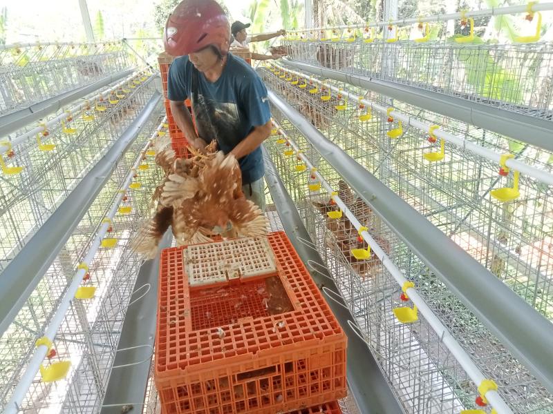 Kegiatan ini dilakukan secara bertahap dengan melibatkan pengelola dan pekerja kandang. Dalam prosesnya, ayam petelur dimasukkan ke dalam kandang baterai yang telah dilengkapi dengan sistem pakan dan minum otomatis, sehingga diharapkan dapat menunjang produktivitas serta memudahkan perawatan.